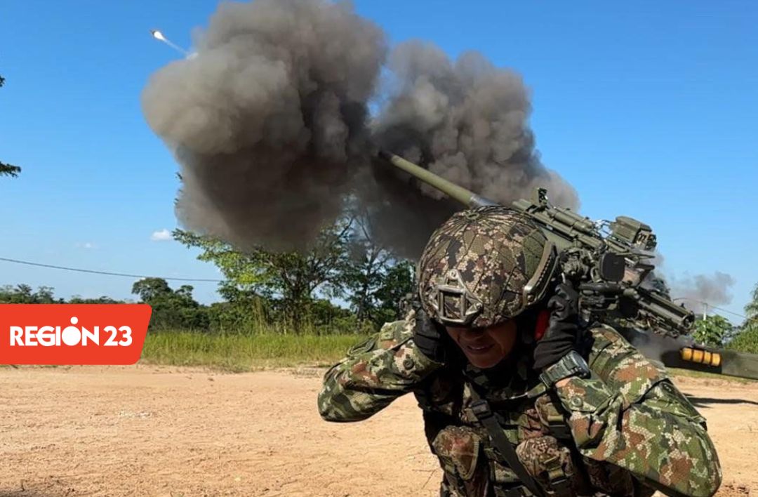 El Ejército Nacional adelanta labores de fuego disuasivo en Tibú, Norte de Santander, con el fin de permitir a las distintas unidades despejar sectores con fuego de artillería y de esta forma generar las condiciones para el ingreso seguro de tropas al área del Catatumbo.
