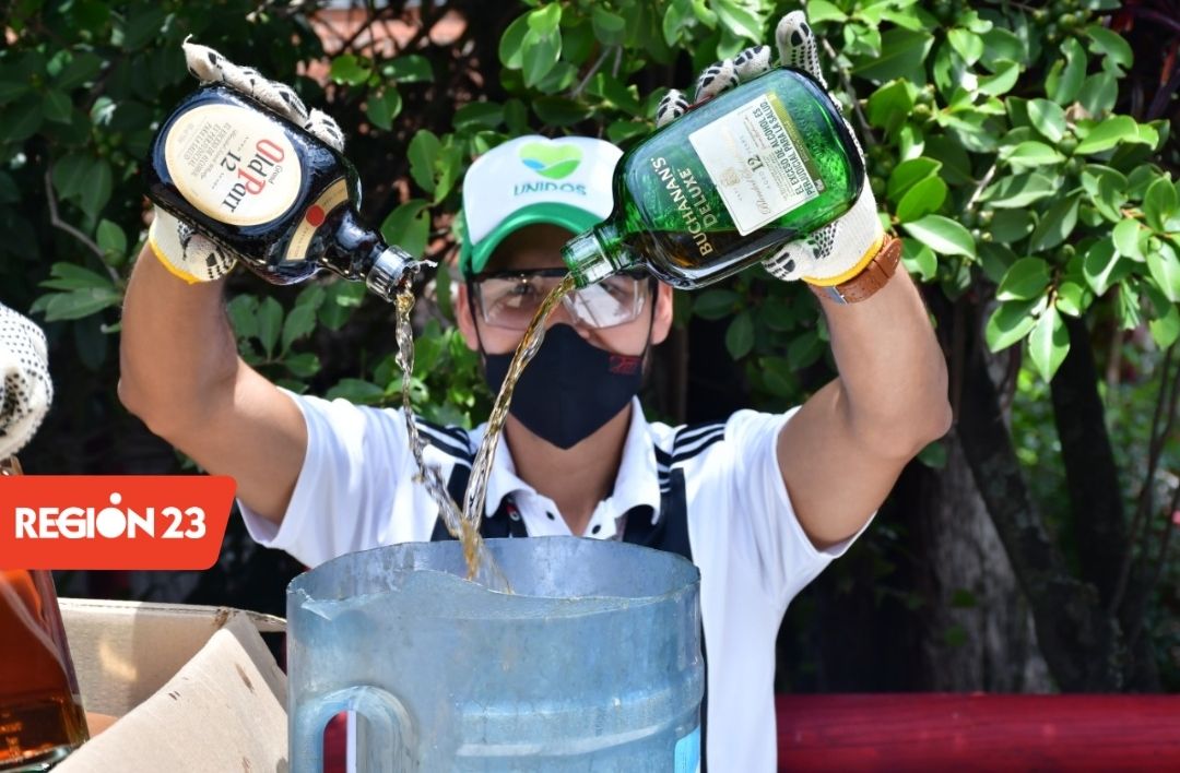 El coordinador del Grupo Operativo de Rentas Departamentales, Omar Perdomo, informó que “es importante aclarar que esta destrucción se hace de una forma muy amigable con el medio ambiente; los licores son vertidos en tanques plásticos que posteriormente son llevados y vaciados en la Planta de Tratamiento de Aguas Residuales San Fernando en Itagüí, que aprovecha el alcohol de los licores para tratar las aguas en una forma muy técnica y profesional”. Otros insumos como plástico, vidrio, papel y cartón son reciclados por empresas autorizadas.